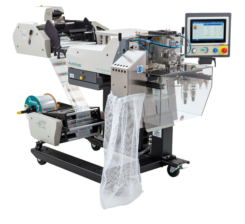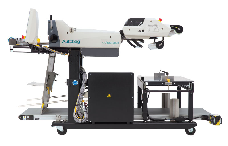 AUTOBAG® brand 800S bagger is uniquely designed to provide enhanced productivity for large bag packaging applications up to 22 in wide. This system features a breakthrough bag opening technology that securely grips and holds the open bag in place, creating a large, square opening (up to 11 in x 11 in) that allows for easy loading of large products and multiple items.