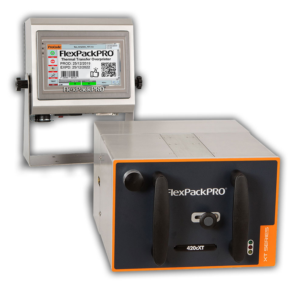 Designed with the high-volume industrial user in mind, the new FlexPackPRO XT Series Thermal Transfer Overprinter models provide many outstanding benefits. These include having an extra-large ribbon capacity, rugged stainless-steel controllers, increased print areas, and enhanced color interface.